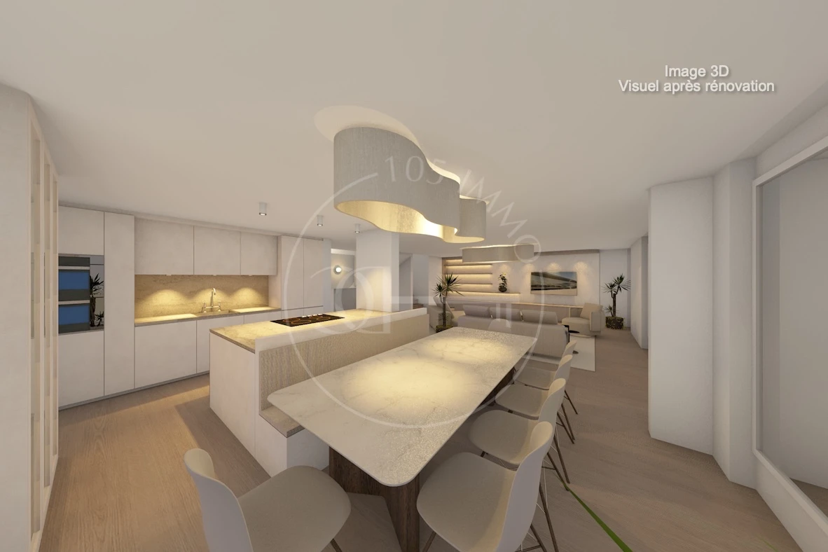 Les images 3D présentées ici, illustrent une proposition d’aménagement et de modernisation destinée à mettre en valeur tout le potentiel de ce bien. Elles invitent à imaginer ce que pourrait devenir l’appartement après rénovation.
